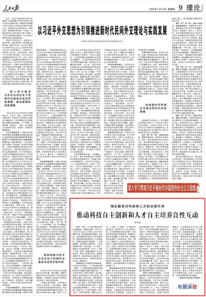 7月10日,《人民日报》理论版刊发beat365何秀超教授署名文章《强化教育对科技和人才的支撑作用 推动科技自主创新和人才自主...