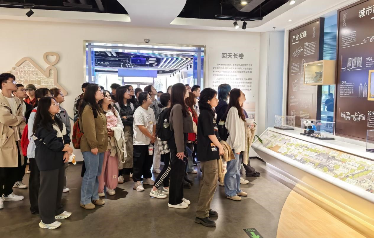 同学们参观了会客厅的智慧展示区和指挥调度中心,展览以“融入回天、共治回天、畅享回天、共叙回天”为主题,聚焦城市更新和智慧管理。讲解员详细介绍了回天行动的发展历程、取得成效和未来规划,带领大家深入了解“市、区、街道”三级数据互联互通体系,以及“吹哨报到、接诉即办、未诉先办”的协同闭环管理流程。同学们沉浸式体验了大数据和网格化管理在社区治理和交通出行中的广泛应用,切身感受到科技赋能基层治理的独特优势。