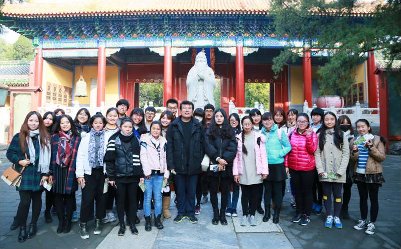 不登高山,不知天之高也;不临深溪,不知地之厚也;不闻先王之遗言,不知学问之大也。本次实践教学活动旨在让学生通过参观孔庙和国子监博物馆,闻“先王之遗言”,知学问之大,鼓励学生树立远大理想。使学生在古代最高教育机构中感受浓厚古典文化氛围,体验中式经典学习理念,让学生在实践中加深对平时课堂知识的理解,构建理论知识和实践感悟相结合的新型知识框架,“人伦日用”。
