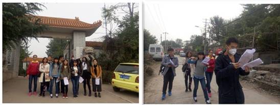 2016年10月16日下午,全班同学在基地集合,教师明确任务和注意事项后,五个小组分散调查,老师跟随走访。调查内容为:西沙屯地块的用地现状(5组合作)、道路交通情况(1组)、公共基础设施规模和分布(1组)、绿地景观(1组)、基地历史文化特色、居民情况和管理组织机构(1组)。