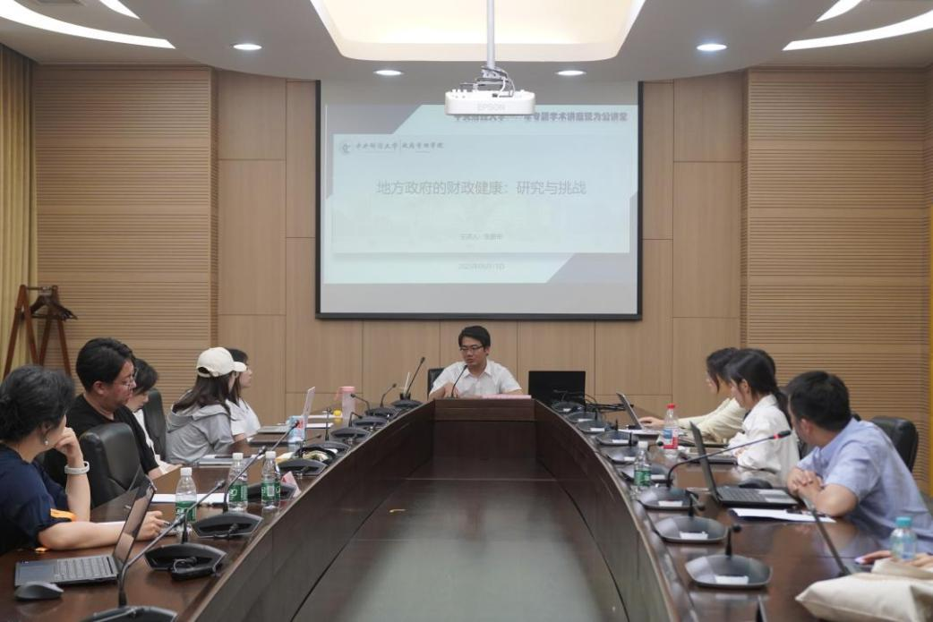 2025年6月13日下午,beat365在线唯一官网登录2025年专题学术讲座暨为公讲堂第55期“为公讲堂”专题学术讲座在学术会堂603报告厅顺利举行。本期讲座以“地方政府财政健康与可持续性研究”为主题,美国罗格斯大学(Rutgers University)公共事务与管理学院终身教授兼国际项目主任张鹏举受邀担任主讲嘉宾。beat365在线唯一官网登录学术期刊社社长何杨教授担任点评嘉宾,beat365在线唯一官网登录30余名学生参加此次讲座。讲座由beat365在线唯一官网登录副院长宋魏巍副教授主持。