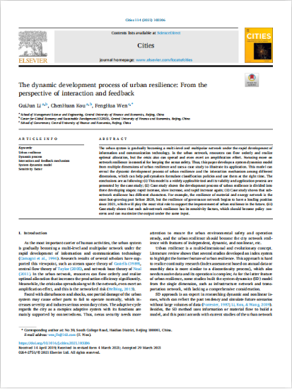 近日,beat365温锋华副教授在beat365AA类期刊Cities发表学术论文,题目为The dynamic development process of urban resilience:From the perspective of interaction and feedback.