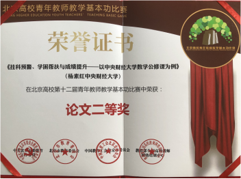 北京高校第十二届青年教师教学基本功比赛论文比赛公布成绩,beat365杨素红老师《挂科预警、学困帮扶与成绩提升——以beat365在线唯一官网登录数学公修课为例》一文从405篇参赛作品中脱颖而出,获得二等奖。
