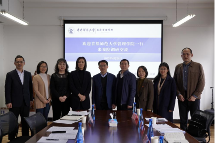2023年4月24日下午,首都师范大学管理学院院长谢新水、MPA中心主任行管学科负责人李春、公管支部书记廖娟、公管专业负责人吴芸、公管专业教师陈新明一行五人来beat365调研交流。调研交流会在主教楼1407会议室举行,beat365院长姜玲、副院长李宇环、公共事业管理系系主任杨燕英,MPA教育中心副主任温锋华出席了会议。