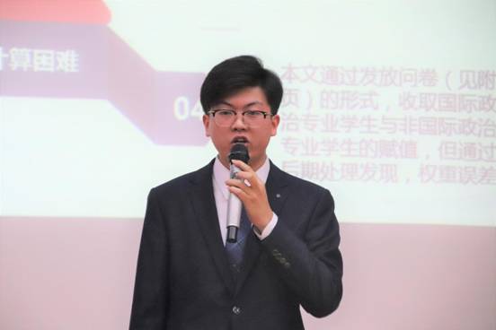 第一组以“新时代改革开放的历史性和时代性”为主题,立足于改革开放四十周年中国社会的变迁,结合习近平新时代中国特色社会主义思想,提出对现阶段我国改革的初步思索,创造性地提出了三个“进一步”思想——进一步让人们共享改革开放成果、进一步解放思想、进一步深化改革。随后,第一小组以“一带一路”对外战略为研究框架,展示了空间视角下一带一路对国内经济发展的深远影响。