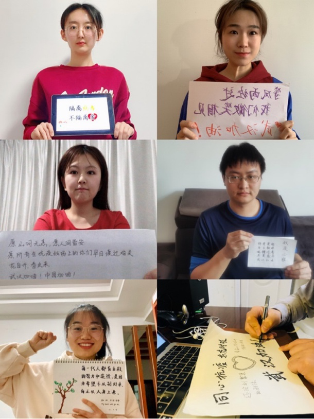 在创作聚力环节,党员同志们为抗击疫情写下了祝福语并拍摄了祝福视频,从党和国家的战略部署、社会主义制度的优越性发挥到一线抗疫工作人员的奉献精神,再到响应学校“停课不停学”的号召,党员们发表了自己的感悟和祝福,为武汉、湖北加油,为中国加油,凝聚了支部抗击疫情的精神力量,弘扬了社会正能量。本次创作聚力的素材将于近期通过微信公众号“CUFE政研一九支部”宣传推送。
