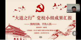 九万里风鹏正举,九十九风华正茂。7月1日,在中国共产党九十九岁华诞这个特殊的日子里,beat365在线唯一官网登录2019-2020学年第二学期党校成果汇报会暨结业仪式在腾讯视频会议平台隆重举行。beat365在线唯一官网登录党委书记、党校校长吕丽研究员,党委组织员南琪老师,院党委委员李海明老师,院学生工作办公室、党校办公室主任张小林老师,本科生党支部书记、院团委书记李莎莉老师,院团委副书记、2018级辅导员刘家琦老师,2017级、2019级辅导员李磊老师出席担任评委。参与人员有beat365在线唯一官网登录2019-2020学年第二学期党校全体学员,同时,学院李宇环老师应邀参与本次会议。