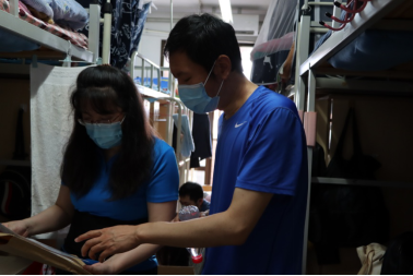 各系主任、党支部书记也纷纷带头、团结奋进、勇于担当,“丹心育桃李,润物细无声”,老师们楼上楼下穿梭,铺上铺下寻找,一个个繁忙的身影穿梭在宿舍中,展现了师生之间的温情大爱。