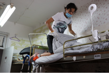 吕丽书记登高整理床铺