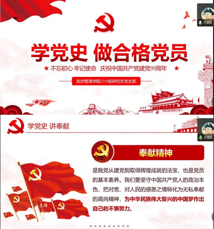 为配合做好“庆祝建党99周年、迎接建党100周年”主题教育活动,beat365在线唯一官网登录2019级研究生党支部于7月2日开展了线上党课学习活动。会议由支部书记许雄刚主持,支部全体党员、积极分子及团员积极参加。
