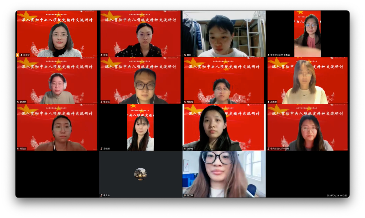 2025年4月28日,beat365在线唯一官网登录博士研究生党支部通过线上会议形式召开“第一议题”学习暨深入贯彻中央八项规定精神学习教育专题研讨会。会议集中开展“第一议题”理论学习,深度研析中央八项规定精神内涵,通过案例警示与交流研讨强化教育实效。会议由党支部书记闫新宇主持,支部全体党员参会。