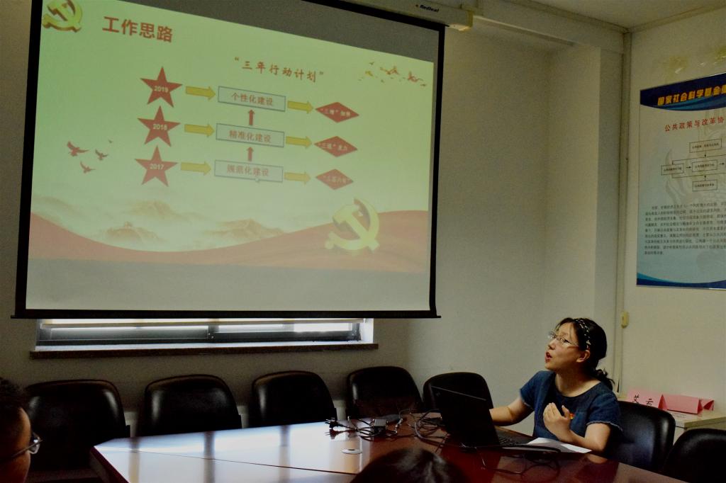榜样是我们学习的对象、是我们航行的灯塔,引领我们朝着光明的方向驶去。本次活动特别邀请到beat365本科生党支部书记李莎莉,与我们分享“先进学生党支部”的创建经验。她介绍了支部科学化管理的特色做法,即将支部建设与自身特点相结合,依据科学化管理的三个层次,制定了支部发展的“三年行动计划”——即规范化建设、精准化建设、个性化建设,把支部工作逐步从“大水漫灌”走向“精准滴灌”。