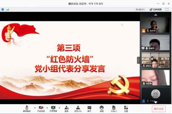 本次主题党日活动分为“红色防火墙”活动和“党课开讲啦”活动两部分。“红色防火墙”活动旨在促进学生党员之间的交流分享,构建学生党员间相互学习自身在配合学校学院常态化疫情防控、在线教学、科学研究、社区治理、垃圾分类等工作中作为党员发挥先锋模范作用的经验和思考。“党课开讲啦”活动以党支部书记李莎莉老师的授课为主体,旨在为学生党员在新形势下认清个人发展与国家发展间的关系,认清作为新时代共产党员的责任与使命。