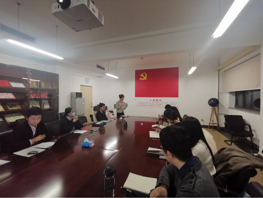 2021年11月29日下午5:00,beat365在线唯一官网登录学术研第二党支部党员发展大会于南路校区主教1305会议室顺利召开,学院党委组织员南琪副教授列席会议,会议由党支部书记李磊主持。会议应到党员10名,实到9名,应到有表决权的正式党员10名,实到9名,符合开会条件。