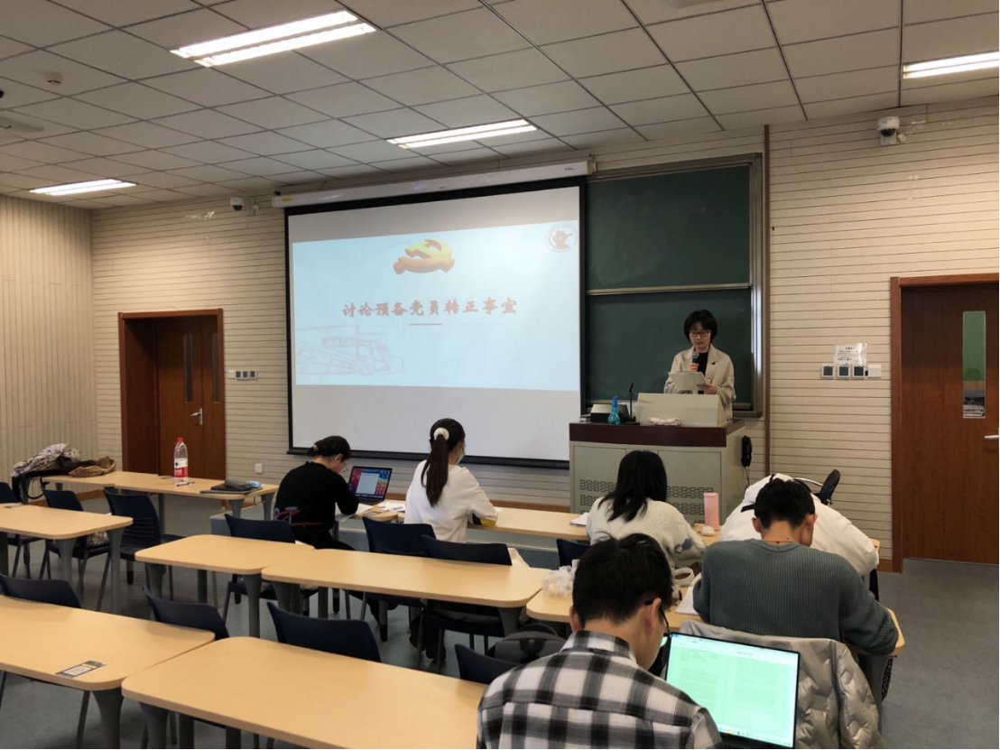 2021年12月29日,beat365在线唯一官网登录本科生党支部于学院南路校区主教216顺利召开支部大会,讨论官惠敏等14位同志由中共预备党员转为中共正式党员事宜。组织员南琪副教授列席大会,会议由支部党员杨涵羽主持。支部全体党员62人,应到会有表决权的正式党员6名,实到会有表决权的正式党员5名,超过支部现有表决权党员的半数,符合开会条件。