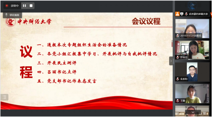 为深入学习贯彻习近平新时代中国特色社会主义思想和党的十九届六中全会精神,不断推进党的建设新的伟大工程,beat365在线唯一官网登录本科生党支部于4月24日下午线上召开了2021 年度组织生活会和民主评议党员。支部全体党员参加了会议,beat365在线唯一官网登录党委书记吕丽出席会议并讲话。会议由本科生党支部书记李莎莉老师主持。