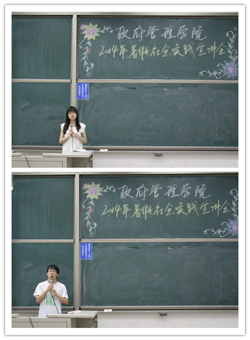 在听完栗老师的讲解之后,在场同学已经对于暑假社会实践有了一个较为宏观的认识。为了使同学们对于实践活动细节能有更多的了解,校实践学术部副部长尹乐薇从学校审阅过程的角度为同学们讲解标书制作中需要注意的内容,讲解过程非常详细,重点突出。此外,尹同学还结合自己实践的切身经历,使得介绍变的更加生动,给同学们以直观感受,让大家受益良多。紧接尹同学的讲解,暑期社会实践优秀个人陈建煜对两位嘉宾所讲内容进行了总结,并相应扩充。他主要从组队、选题、撰写标书、实践规划等角度做出指导讲解,在这过程中穿插了各种实例、图片,大大提高了内容的说服力。