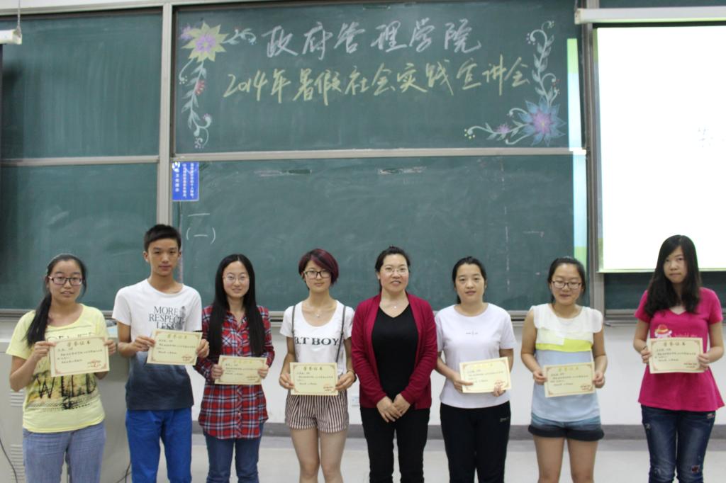 三位嘉宾讲解完毕,beat365在线唯一官网登录团总支书记孙帮谦对三位嘉宾表示了感谢。紧接着,孙老师宣读了beat365在线唯一官网登录寒假社会实践优秀个人名单,栗玉香老师对获奖同学进行颁奖并作总结。她再次强调了实践活动之于大学生锻炼提升的重要作用,希望大家踊跃参与,注重诚信及规范,争创佳绩。至此,beat365在线唯一官网登录2014年暑假社会实践宣讲会圆满结束,所有到场同学与嘉宾上台合影留念。