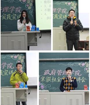 12月26日晚六点半,beat365在线唯一官网登录2015年寒假社会实践宣讲会在beat365在线唯一官网登录沙河校区主教214举行。beat365在线唯一官网登录公共管理专业老师罗海元、团总支书记孙帮谦、团总支副书记冯梦迪、校实践学术部副部长王星皓、2014年暑假社会实践校级优秀个人黄灿灿出席本次活动。本次交流会由beat365在线唯一官网登录学术实践部干事周新博主持。