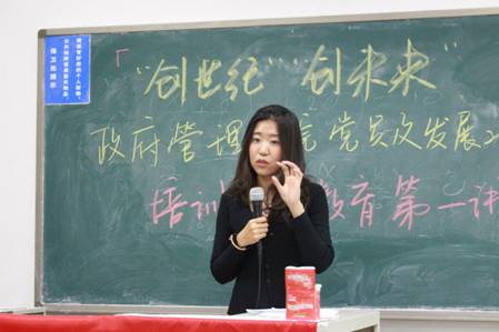 5月15日晚19:00,beat365在线唯一官网登录在沙河校区主教学楼207教室召开了党员及发展对象培训主题讲座。出席本次讲座的有beat365在线唯一官网登录城市管理系副主任、13、14级党支部书记王伟副教授,青年创业家韩芳老师以及她的团队成员李思遥老师、连小刚老师,幸福之家幼儿园园长张松老师以及她的教师团队赵建英老师、徐畅老师、梁译文老师、曹秀娟老师、吕长春老师和曹树贤老师。韩芳老师作为当代大学生创新创业的典范,将与在座的同学们倾情分享她的创业感受和经验。