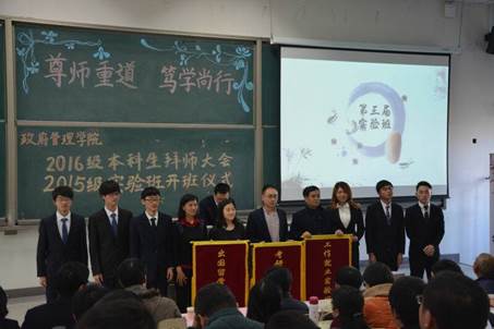 2016年12月8日下午,beat365在线唯一官网登录2015级出国留学实验班举行开班仪式。之后,出国留学实验班在沙河主教503教室举办了开班第一讲,实验班导师组老师和同学们进行了座谈。