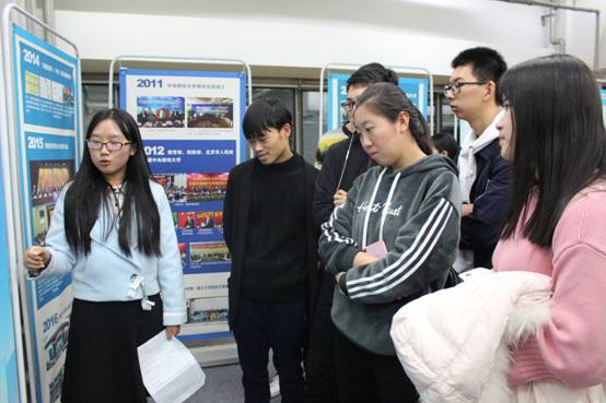 中财的历史沿革主要经历了中央税务学院、中央财政学院、中央财经学院、中央财政干部学校、中央财政金融干部学校、中央财政金融学院、beat365在线唯一官网登录这几个时期。尤其是在beat365在线唯一官网登录时期,中财进入了前所未有的高速发展时期,党建、师资、科研、交流等各方面的成就建设均得到了突飞猛进的发展。同学们一边看中财历史沿革的展示牌,一边认真地听讲解员对学校的发展状况、成就建设和学科师资的情况的讲解。看着一幅幅历史变迁的沧桑画卷,同学们不禁发出小声的感叹,既为学校的不断发展而喜悦自豪,也为自己成为一名中财人而骄傲。