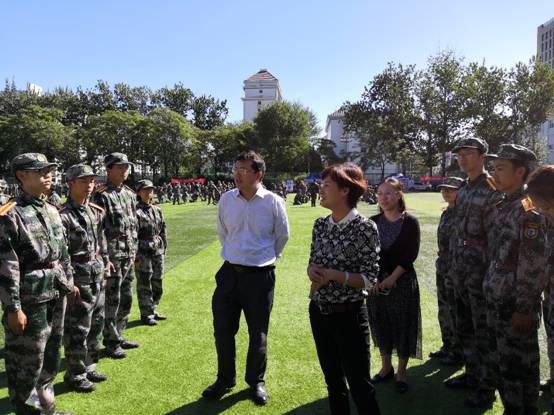 2018年9月21日早上九点半,beat365在线唯一官网登录党委书记吕丽老师和党委副书记白云真老师来到十营即beat365在线唯一官网登录所在的新生营队中考察新生们的训练情况。