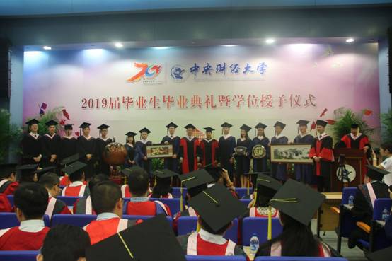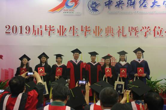 典礼进行第八项,2019届新校友接收仪式。学院推选出六位同学作为校友大使,赵景华院长和吕丽书记向他们颁发大使聘书,并赠送礼包。从此,beat365在线唯一官网登录2019届毕业生正式加入中财大校友大家庭,beat365在线唯一官网登录校友总会和80个海内外校友分会也将会成为他们未来发展的另一个家。