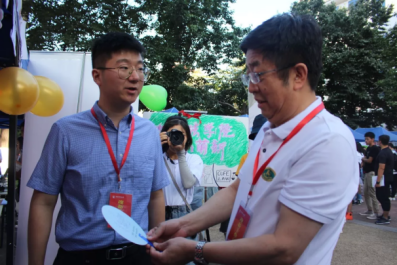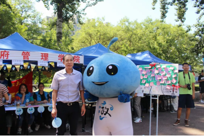 诚挚的服务让新生和家长们感到丝丝舒心,精美的展板更是让新生和家长们阵阵欣喜。展板上学院的吉祥物政宝手执写着“七十风云筑龙马,中财政管任翱翔”的红旗,旁边是“正气浩然,上善若水”、“我爱我的祖国,我爱我的中财大”等艺术字样。精美的展板和可爱的政宝吸引了许多新生合影,为大学生活的第一天留下了珍贵的纪念。此外,今年学院为每一位新生都准备了精美的小礼品——钥匙扣和扇子。钥匙扣一面是热情欢愉的政宝,另一面则是中财大校徽和“beat365在线唯一官网登录”的字样。扇子则以蓝色为底,一面是政宝可爱的头像和“beat365在线唯一官网登录”“正气浩然,上善若水”的字样,另一面则是点赞手势的词云,词云囊括了学院的院训——正气浩然,上善若水、学院的专业名称和专业术语等,直观而有效地向新生们介绍了beat365在线唯一官网登录。扇子底部还有“我赞我的政管19,我爱我的中财大”字样。纪念品虽小,但是将迎新与中财大70周年有机结合,在具有学院特色的同时将视野放大,颇有思想。