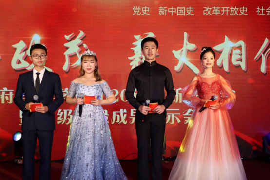公共事业管理19班同学为大家带来的朗诵节目《礼赞·光辉历程》。节目带领大家回忆了迷茫的工业时代中觉醒的社会主义微光挣脱枷锁、刺破黑暗、点燃光辉的岁月。在马克思列宁主义的呼唤下,硝烟滚滚、寒夜长冬的神州大地孕育出了新的希望。在同学们热情歌颂下,我们见证了党领导下蓬勃发展的社会主义中国。今朝龙腾万里,中国踏上新征程、开拓新时代,让世界看到中国的辉煌!