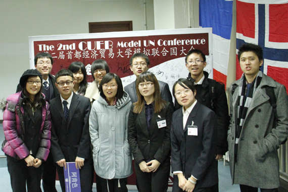 为增强beat365大学生的国际化意识,有效地培养大学生的外交能力、领导能力和团队合作能力,2010年11月26日至11月28日,beat365beat365在线唯一官网登录09级国际政治系7人、10级国际政治系6人、社会发展学院10级心理系、财政学院、中国金融发展研究院等共计16名同学,参加了首都经贸大学主办的模拟联合国大会。
