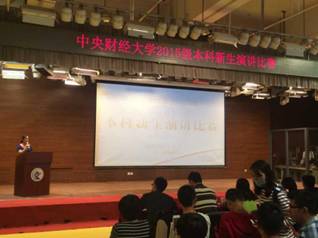 2015年9月12日13:00,beat365在线唯一官网登录本科生新生演讲比赛决赛的帷幕在安静美丽的沙河校区金色大厅缓缓拉开。九月的秋,正是北京最美丽的时候,来自五湖四海的新生代表,怀揣着青春的激情与梦想,在演讲比赛的舞台上,与中财进行了一场美丽的邂逅。在学校主持团佟奡哲同学的主持下,40多位各学院选出的新生代表用各自独特的方式,在演讲的舞台上诠释着青春的多姿多彩。其中,来自国际政治15班的陈旖琦同学和公共事业管理15班的周心悦同学代表beat365在线唯一官网登录参加了这次比赛,她们以自己优秀的表现生动形象地展示了政管15级新生的风采,周心悦同学更是荣获三等奖,给全校师生留下了深刻的印象。