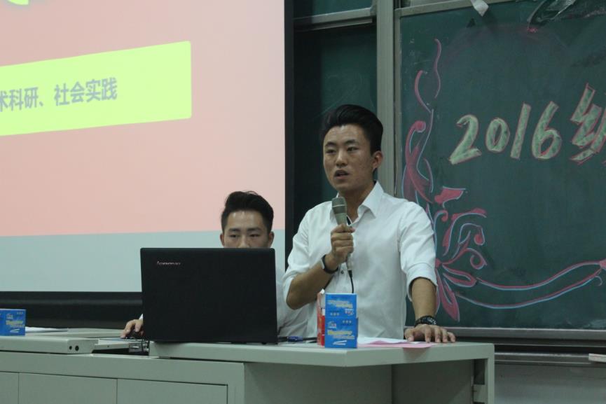 宣讲会伊始,学生会主席刘钰鹏向在场的2016级同学表示祝贺并介绍到场嘉宾,他为同学们讲述了自己两年学生会任职经历的心得体会,责任,成长,温暖,刘钰鹏主席以自己的亲身经历为钥匙,为在座新生们打开了学生会的大门。随后,团总支副书记陈冰为大家介绍学生会的基础架构与组成部分,beat365在线唯一官网登录团总支学生会由大一到大三的同学组成。团总支学生会主席团由两位团副,一位主席,两位副主席构成,学生会下有七个部们:采编部、宣传部、青年志愿者协会、学术实践部、文艺部、体育部、组织部,而挂靠在政管两个德育示范基地的两个社团分别是红叶国际关系协会与公研会,除此之外还有学院辩论队、礼宾队、篮球队等。陈冰团副的介绍清晰完整,使得在场同学对学生会有了宏观的了解。紧接着由团总支副书记杨崇祺为大家介绍beat365在线唯一官网登录取得的成就,幻灯片上是文字与图片,但这背后是政管人的不懈努力与长期坚持,而在这之中,团总支学生会的各位成员起到了不可忽视的作用。