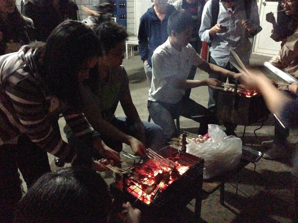 抵达西湖农家乐后,大家经过短暂的休整,开始进行第一个项目——篝火晚会。冉冉的篝火升起,伴着温暖的火光,大家摆好烤架,准备接下来的自助烧烤。同学们分工明确、团结协作,效率极高。不久,烧烤的香味便萦绕了整个农家大院,大家聚在一起,边吃边聊,气氛热烈。篝火晚会自然也少不了歌舞表演,大坝音乐奏响,麦霸们跃跃欲试,纷纷大展歌喉,一曲曲经典老歌、欢快歌谣、情歌对唱将晚会推向高潮。