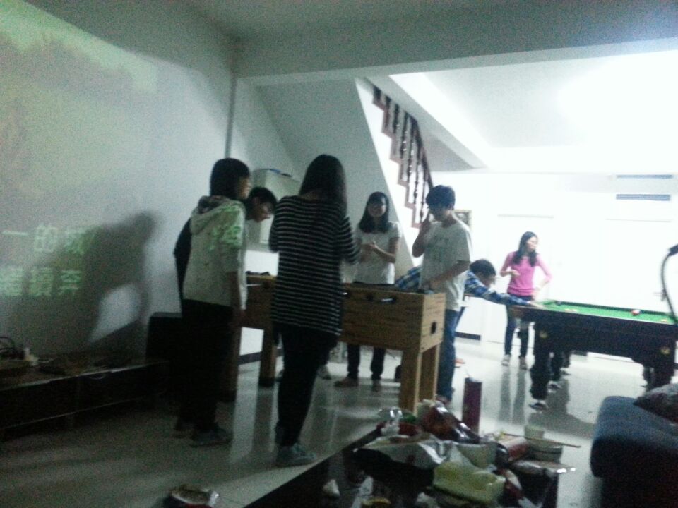 酒足饭饱之后同学们开始了娱乐活动。打桌球、唱K、麻将、X-box。同学们三三俩俩玩得不亦乐乎,别墅里溢满了同学们的欢声笑语。