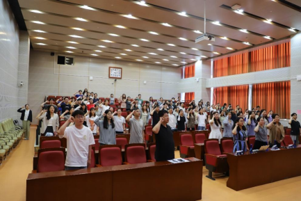 专题辅导结束后,全体毕业生党员在beat365在线唯一官网登录学术型硕士研究生第一党支部尹燕斌同志的带领下重温入党誓词。