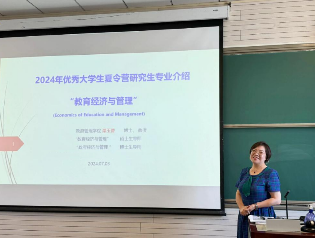 栗玉香教授介绍了教育经济与管理专业研究生培养方向和专业特色,并对学科发展前沿趋势进行讲解。