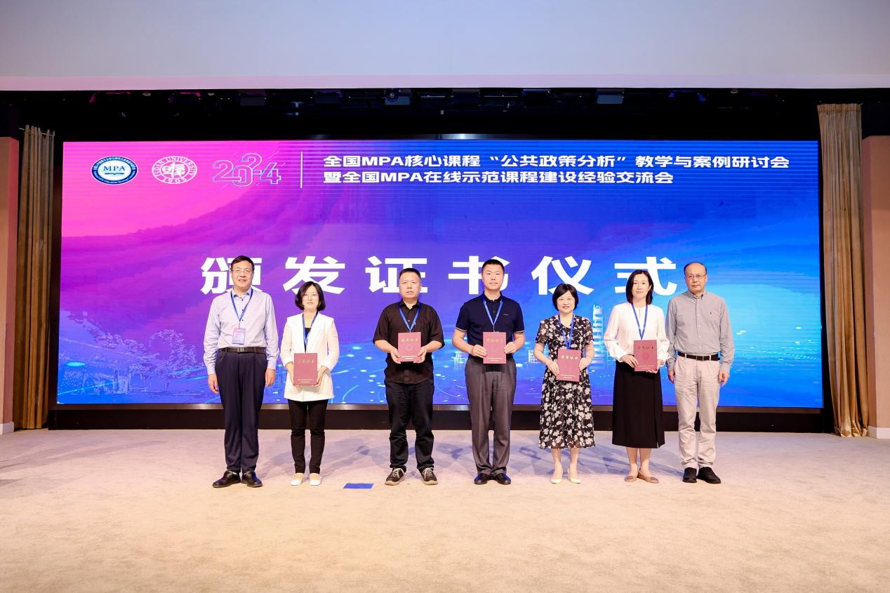 在大会开幕式上,举行了首批全国MPA研究生在线示范课、2023年全国公共管理“精品案例课堂”荣誉证书颁发仪式,复旦大学党委常委、副校长陈志敏教授,全国MPA教指委秘书长、中国人民大学公共管理学院院长严金明教授为获奖代表颁发证书。姜玲教授作为课程负责人领取《城市规划与管理》全国MPA“在线示范课”荣誉证书。
