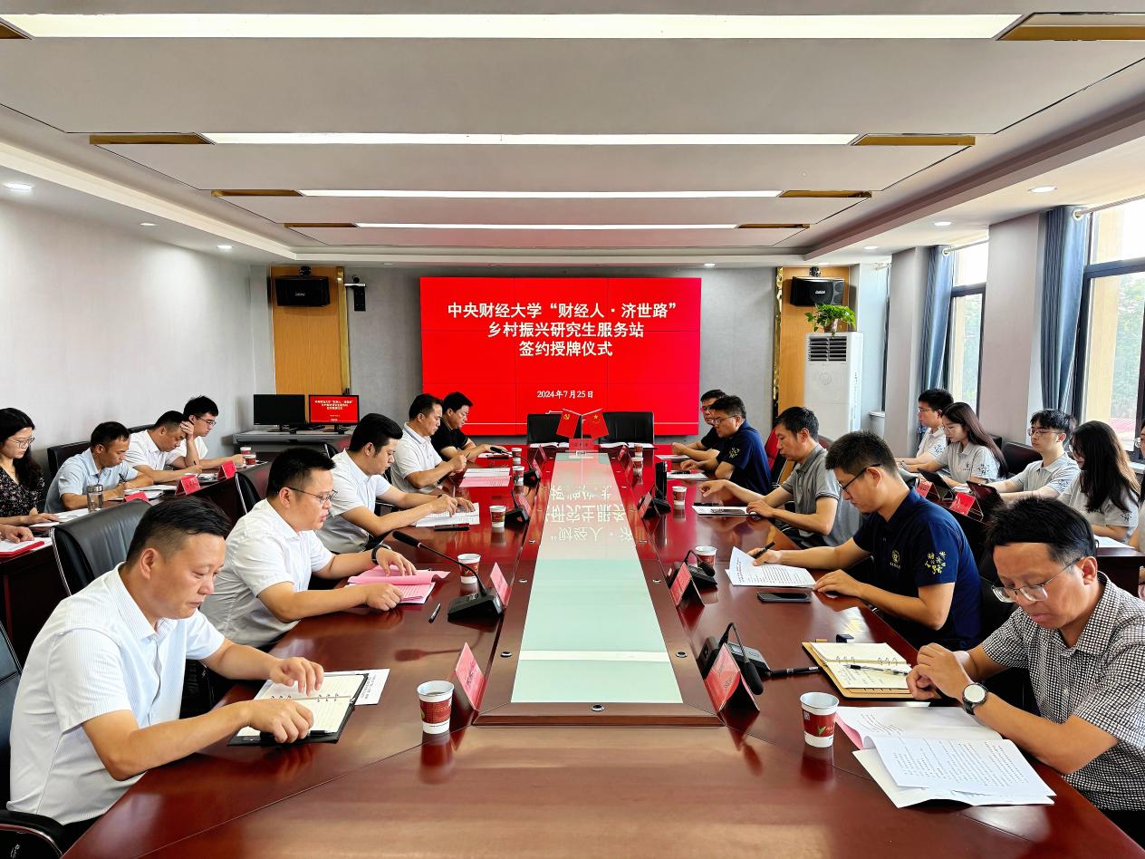 为深入贯彻落实党的二十大精神和中央农村工作会议精神,学习贯彻习近平总书记关于教育和“三农”工作的重要论述,进一步做好巩固拓展教育脱贫攻坚成果同乡村振兴有效衔接,在乡村振兴中“受教育、长才干、作贡献”,2024年7月25日,beat365在线唯一官网登录“财经人·济世路”乡村振兴研究生服务站授牌仪式在湖南省岳阳市岳阳县黄沙街镇隆重举行。岳阳县委常委、副县长贺立,岳阳市农业农村局副局长殷俊,岳阳市农业农村事务中心主任陈细兵,岳阳县农业农村局副局长陈兵良,黄沙街镇党委书记吴进,黄沙街镇镇长张鹏飞以及beat365在线唯一官网登录党委书记于鹏教授,研究生院学位办公室副主任赵志超老师,beat365在线唯一官网登录公共事业管理系周湘林副教授出席仪式。全体研究生服务站成员参加仪式。