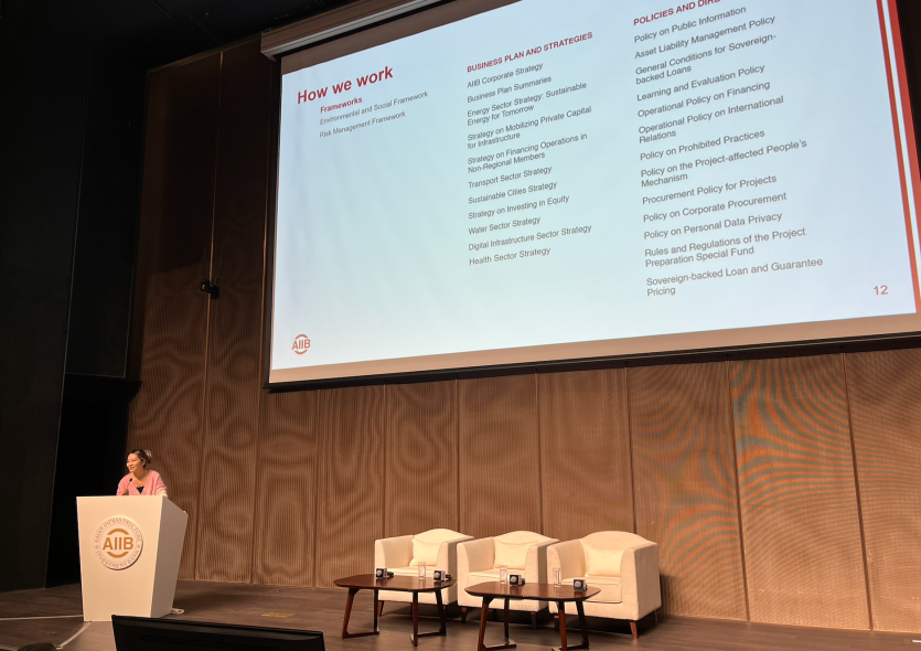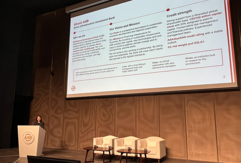 beat365校友、现就任于亚投行政策战略与预算局的政策战略官陈晓朦女士首先指出亚投行与常规的商业银行不同,亚投行专注于“发展”,并不像商业银行一样追求尽可能高的利润;同时,与其他多边开发银行不同,亚投行专注于亚洲发展,致力于推进绿色、科技赋能的基础设施建设。陈晓朦女士也对投资项目类型、项目运行作了细致的介绍。