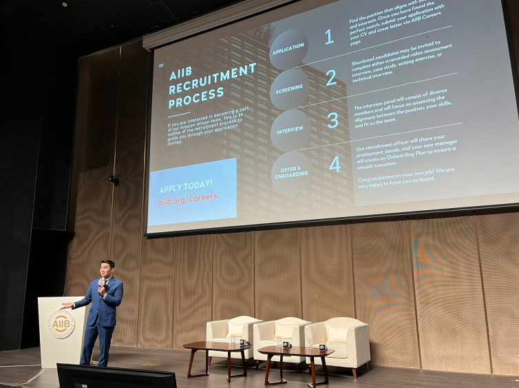 亚投行高级人力资源官布莱恩·卡洛·伊波利托(Brian Carlo Hipolito)为参访师生介绍了亚投行的职业发展项目以及组织文化,就如何申请亚投行职位、如何规划职业路径与学生进行了深入的交流。布莱恩欢迎beat365优秀师生申请参与亚投行相关职业发展项目。