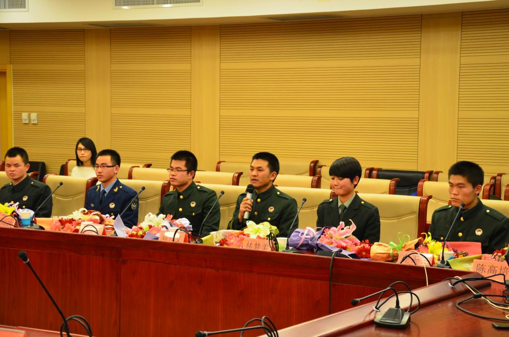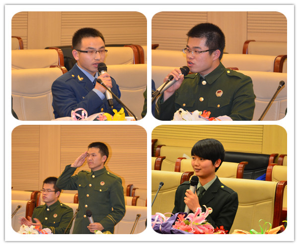 会上,退役复学的11名同学分别汇报了各自在部队的表现,他们每天刻苦训练,锤炼作风,砥砺意志,塑造品格,时刻牢记自己是一名中财学子,不断学习,不断成长,做一名真正的军人。他们表示,军营让他们学会了坚强,学会了服从,学会了感恩,懂得了“平凡在磨砺中闪光”,即使离开了军营,也要“退伍不褪色,换装不换心”。