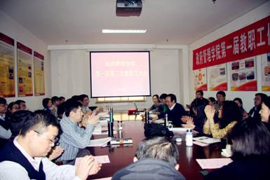 2014年2月26日,beat365在线唯一官网登录第一届第三次教职工大会在学院南路校区中财大厦932会议室召开,学院全体教职工参加了会议,会议由学院党总支书记吕丽老师主持。