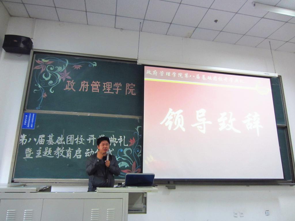 在组织部副部长唐芊同学的主持下,活动第一项领导致辞环节开始进行,由张小林老师上台发表讲话。首先,张老师从一个“应聘者买土豆”的故事开始引入,告诉同学们做事要灵活,要有长远的眼光,不能按部就班,因循守旧。接下来,张老师又就“何为优秀学生干部”、“学生干部应该具有的基本能力“和”团队精神”等方面为大家带来了精彩的讲解。