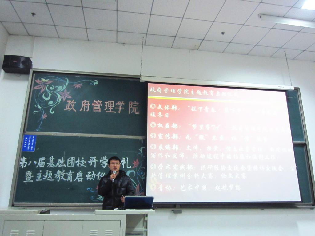 活动第二个环节是由组织部部长宋亦明从活动概述,日程安排,人员分组情况,基础团校组织机构四个方面对基础团校的安排及课程进行简要介绍,使在场同学再一次明确了参加基础团校的意义所在。