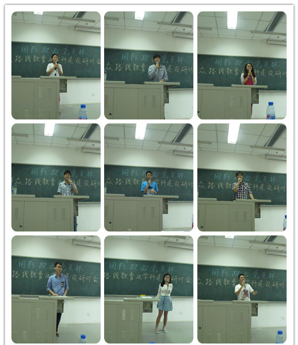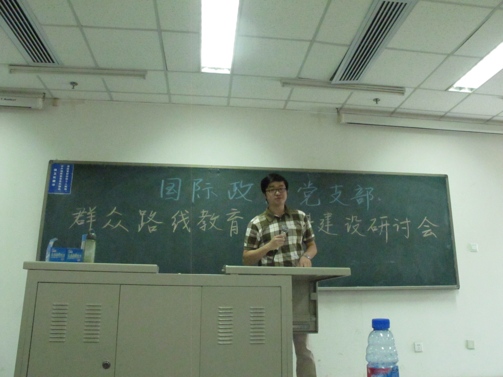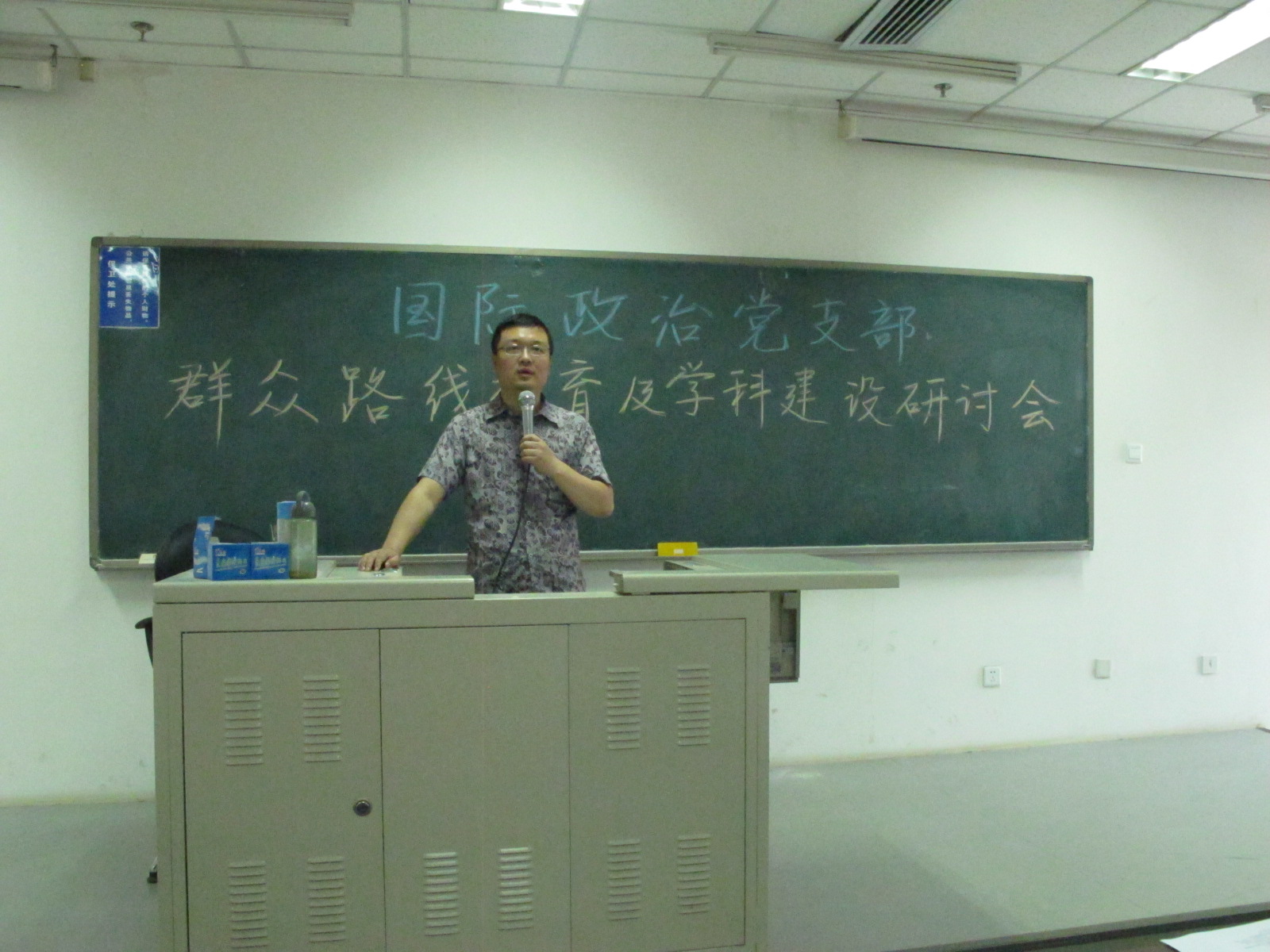 9月11日13点30分,beat365在线唯一官网登录国际政治党支部在沙河校区6号学院楼106教室召开群众路线教育及学科建设研讨会。国际政治专业教师江涛、白云真、张占顺、耿喜梅、辛平、张鹏到场听取11、12级同学关于学院、学科建设方面的看法和建议。