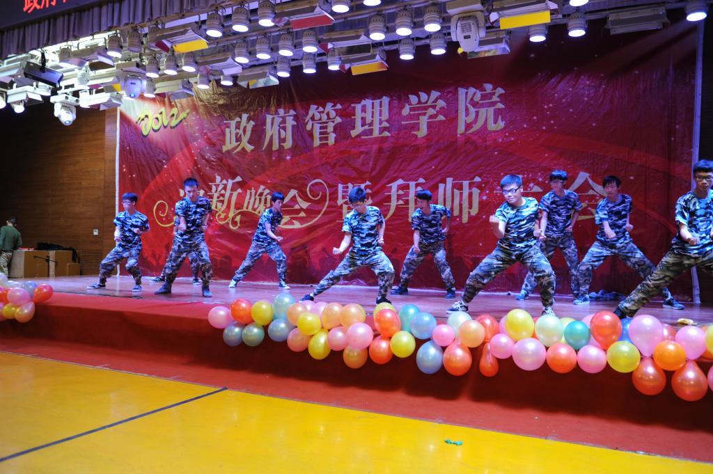 接下来,在酷炫的开场舞煽动下,迎新晚会正式拉开帷幕。刚强的军魂操与柔情的咏春舞形成强大视觉冲击,歌曲《我爱政管》瞬间点燃大家的热情,high翻全场。全场洋溢着青春的热情和年轻的跳跃。激情与感动巧妙融合。在院长抽奖环节里,看着6位同学感激地接过赵院长所赠的宝贵图书,大家都深深感动着院长对弘扬中国文化的殷切期盼和对同学们的用心良苦。感动持续绵延,《政管欢迎你》的歌词飘扬,传唱出学长学姐对12级学弟学妹的热情欢迎与诚挚祝福,那一刻,政管就俨然已成为一个大家庭,温馨而甜蜜,情谊之花瞬间开放。接下来,在师生交流环节中,老师以温柔的微笑和幽默的言辞瞬间融入各位同学,闲聊过程中,坚定、自信悄悄浮现在大家年轻的脸庞上。最后在大家的掌声中和快乐的氛围里,晚会圆满结束。通过本次典礼举行,新生消除了初入学的焦躁与不安,整个学院的凝聚力,向心力增强,大家对未来开始充满自信与斗志。
