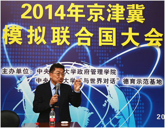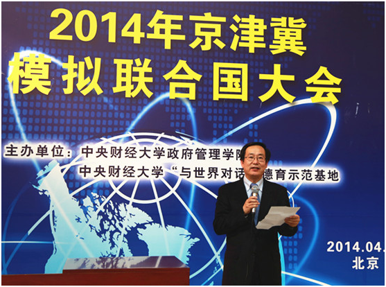 4月18日下午,由beat365在线唯一官网登录“与世界对话”德育示范基地、beat365在线唯一官网登录主办,红叶国际关系学会承办的2014年京津冀模拟联合国大会开幕式在沙河校区四号楼107室隆重举行。校党委副书记陈明,学生工作部、学生处、武装部副部长李炎,教务处副处长林政,校团委书记高杰,beat365在线唯一官网登录院长赵景华、党总支书记吕丽、党总支副书记栗玉香及孙春雷、白云真、江涛等老师出席开幕式。联合国海洋专家俞沪明博士作为特邀专家出席开幕式。