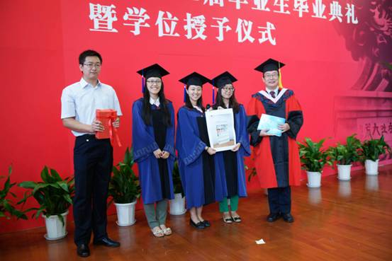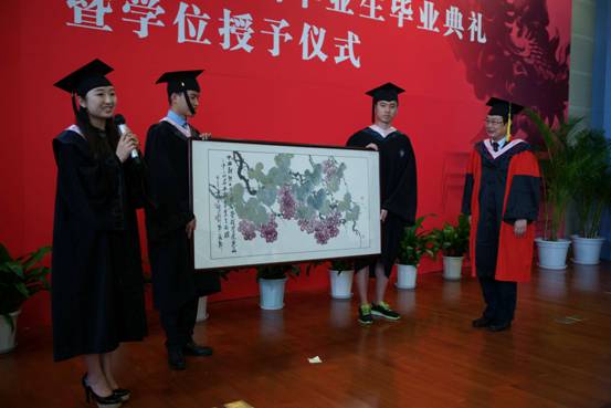 接着是毕业生向学院赠送礼物仪式。“祝愿beat365在线唯一官网登录的未来犹如画中硕果累累的葡萄一样蓬勃发展,再创辉煌。”2010级本科毕业生向学院赠送的国画《硕果累累》表达了对学院的深深祝福。2012级学术研究生则将精心制作,包含了他们研究生阶段经验和感悟的毕业纪念册赠与学院,并向学弟学妹赠送了200本专业书,向学院图书阅览室赠送了精美的书架。纪念册、书籍和书架分别寓含收获、传承和发扬之意,表达了他们对政管学子都能鸿鹄展翅千万里,而勿忘当年卧槽时的美好希冀。2012级MPA双证班别出心裁,向学院赠送了提有“上善若水”四字的屏风,表达了同学们对学院的感恩与热爱,以及牢记院训、担当责任、勇往直前的决心。