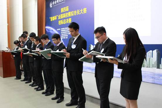11月30日下午13:30,第四届“首都杯”全国高校模拟市长大赛在beat365在线唯一官网登录沙河校区学院楼4号楼107教室开赛。本次大赛由beat365在线唯一官网登录、中国管理现代化研究会政府战略与公共政策研究专业委员会、“未来公务员之家”德育示范基地共同举办,由《城市中国》杂志独家赞助,中国区域协会学术支持,来自全国8所高校的9支队伍参加了本次大赛。大赛也得到了beat365在线唯一官网登录学生处、教务处、学校办公室、教学技术服务中心、团委等职能部门大力支持。
